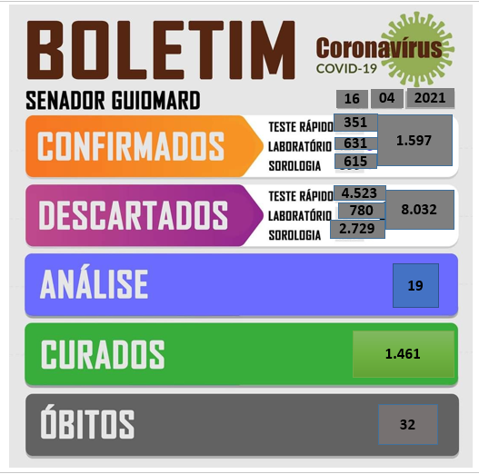 Boletim Covid-19, atualizado em 16 de abril de 2021